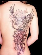 湖北荆州纹身店:美女漂亮的满背凤凰纹身图案图片大全