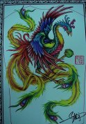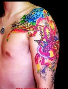 武汉专业纹身网:披肩彩色凤凰纹身图案图片大全