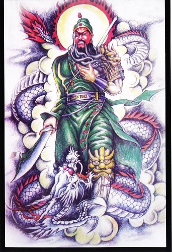 湖北武汉最好的纹身店:关公战龙纹身图案图片大全