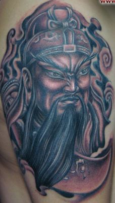 关公纹身图案:手臂关公头像大刀纹身图案纹身图片