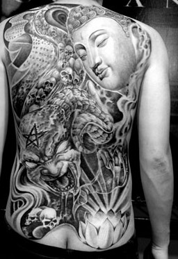 满背佛恶魔纹身图案图片