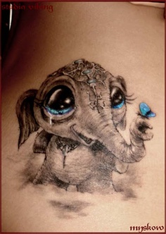 武汉老兵纹身图案大全之颈部可爱小象纹身图案作品图片展示