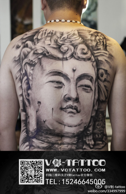 男生后背很酷超帅的满背石雕佛头纹身图案