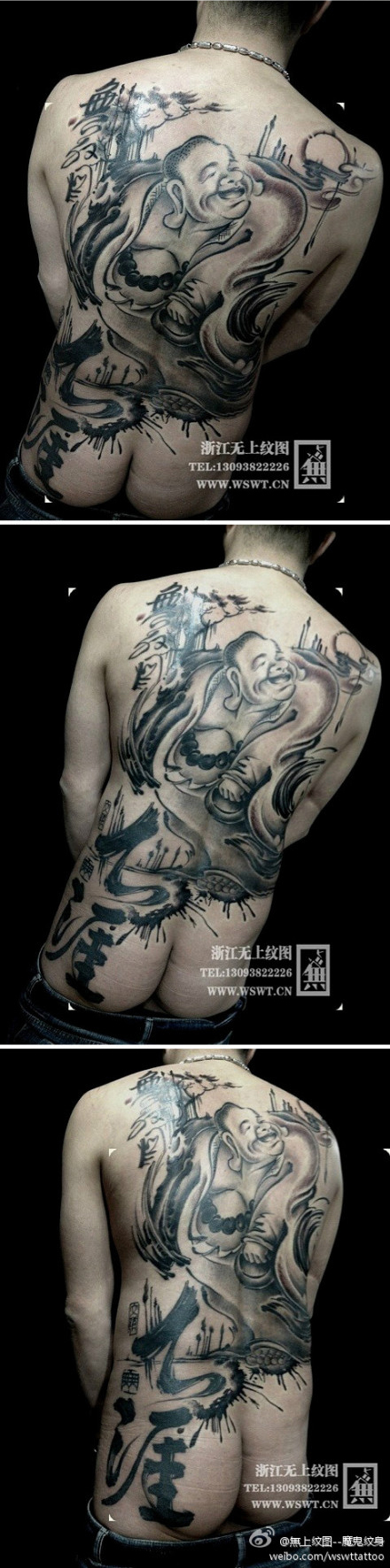 男人后背很酷的满背弥勒佛纹身图案