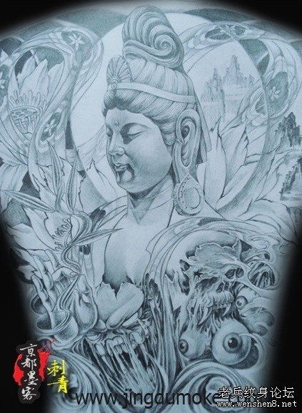武汉最专业纹身为你提供一款满背观音纹身图案纹身图片