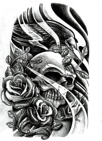 欧美骷髅玫瑰纹身图案图片