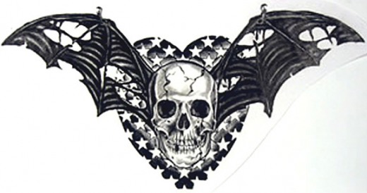 专业纹身店:骷髅蝙蝠翅膀纹身图案
