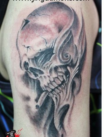手臂抽烟的骷髅纹身图案 手臂抽烟的骷髅纹身图案
