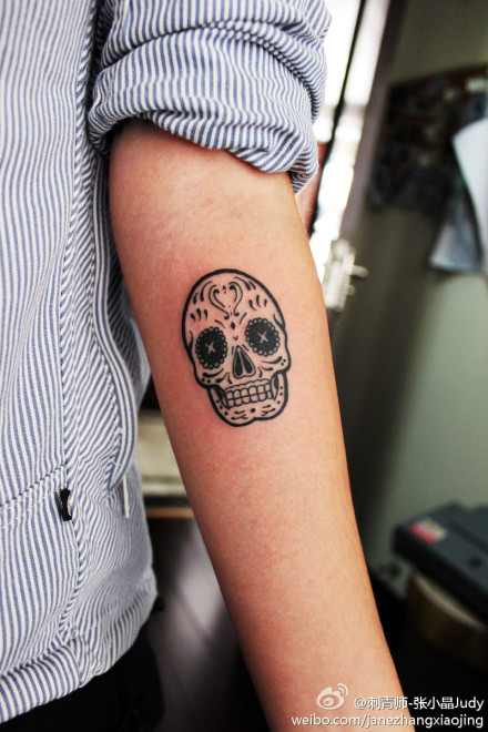 女生手臂唯美时尚的图腾骷髅纹身图案