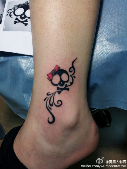 女生腿部时尚小巧的图腾骷髅纹身图案