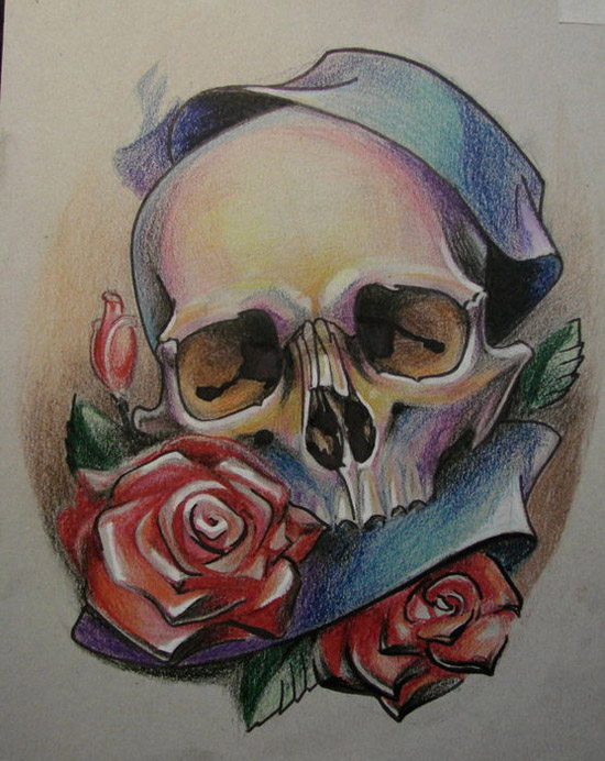时尚潮流的一款欧美骷髅纹身手稿