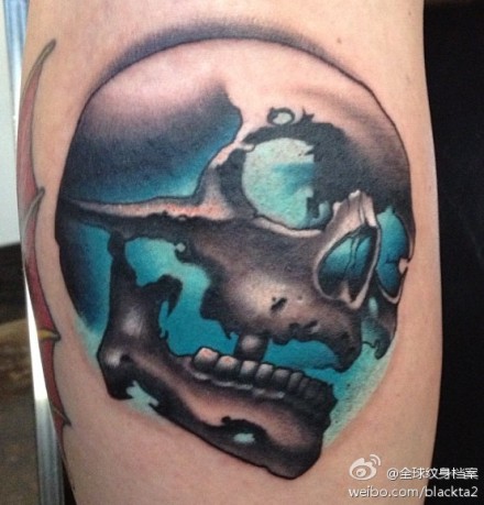 腿部时尚很酷的一款欧美彩色骷髅纹身图案