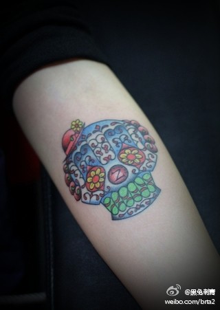 女生手臂潮流好看的骷髅纹身图案