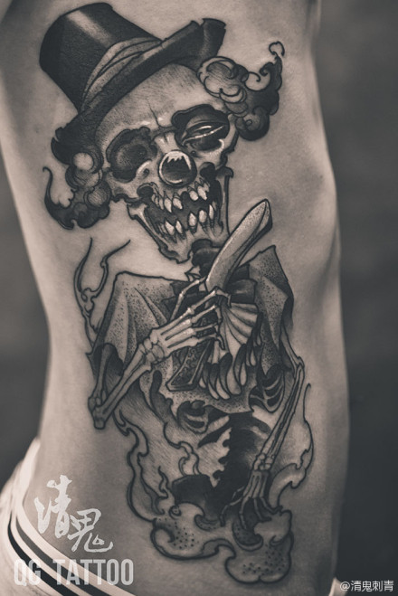 侧要时尚很帅的一款小丑骷髅纹身图案