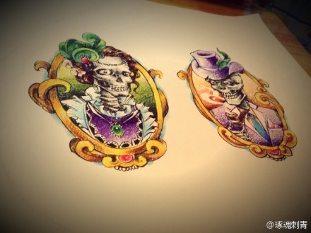 经典时尚的骷髅夫妻纹身手稿