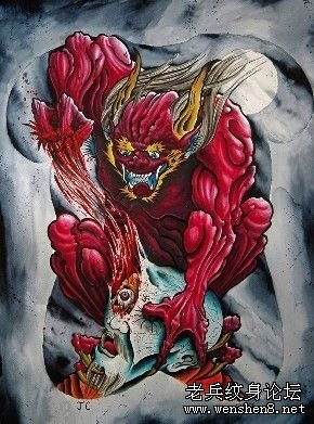 武汉文身店为你提供一款满背鬼怪纹身图案纹身图片