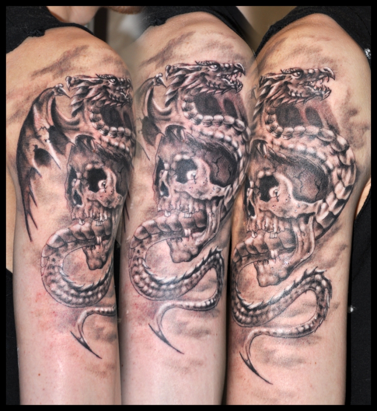 武汉最好的刺青店:大臂龙骷髅纹身图案图片大全