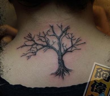 女孩子颈部小树纹身图案 女孩子颈部小树纹身图案