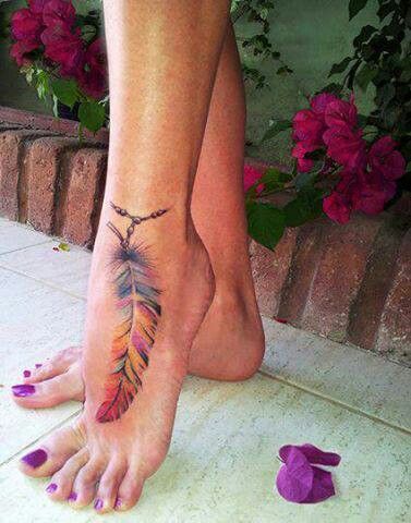推荐一款时尚的脚背羽毛纹身图案