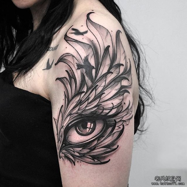 手臂黑灰蜜蜂蘑菇月亮纹身