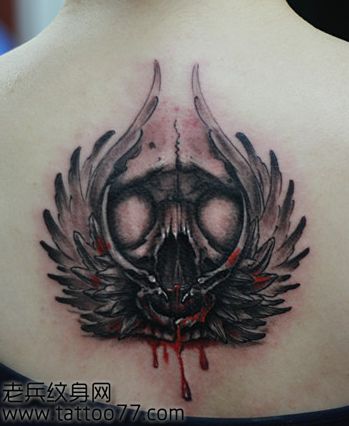 女孩子后背精美的翅膀骷髅纹身图案