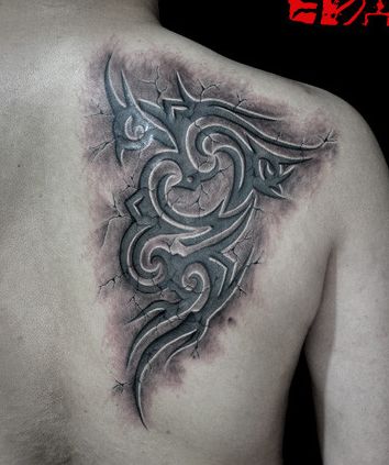 后背一款烙印效果的图腾纹身图案