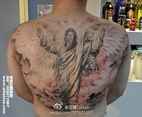 男人后背经典的耶稣纹身图案