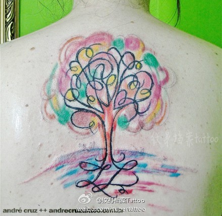 女生后背时尚经典的小树纹身图案