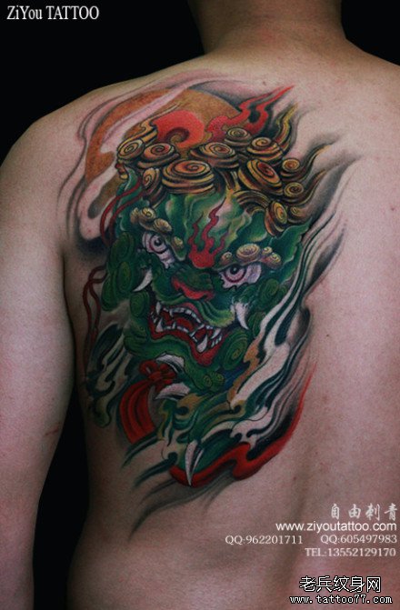 男人后背超帅经典的唐狮子纹身图案