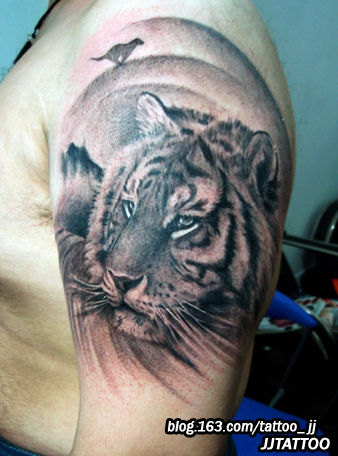 男人大臂纹身图案:男人大臂老虎纹身图案图片