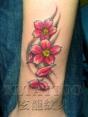湖北武汉最好的纹身店:手部樱花纹身图案图片