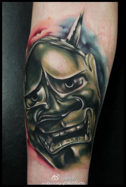 手臂一款经典很酷的欧美彩色般若纹身图案