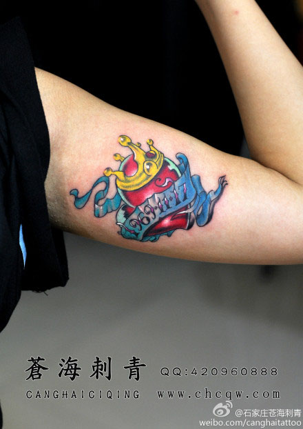 手臂内侧一款小巧潮流的爱心纹身图案