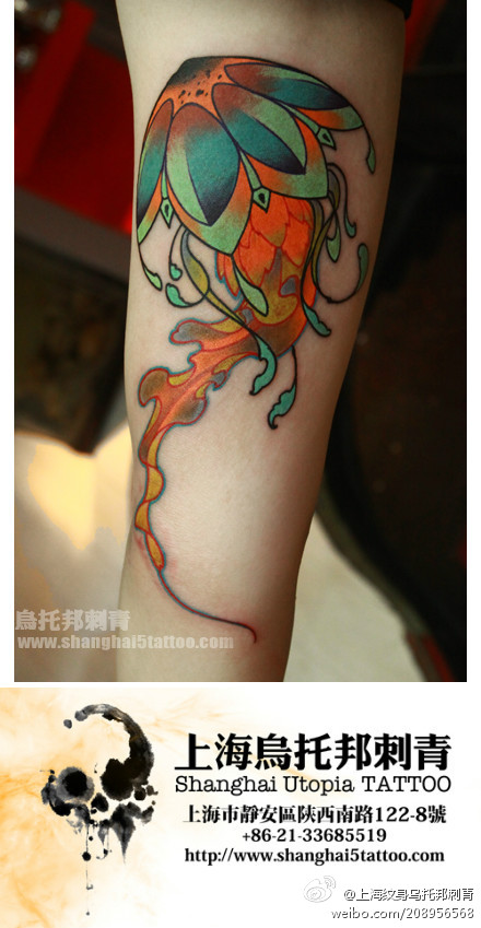 女生手臂经典漂亮的水母纹身图案