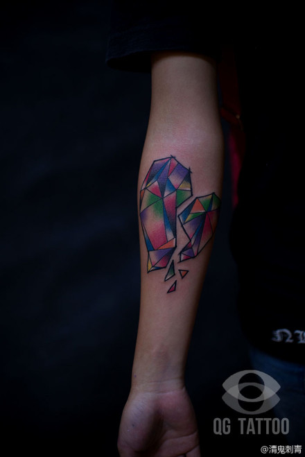 手臂潮流时尚的宝石爱心纹身图案