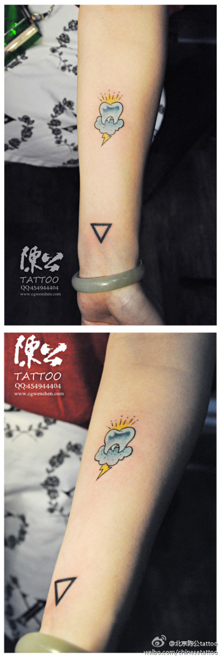 手臂时尚小巧的一款牙齿与乌云纹身图案