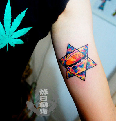 手臂内侧很酷超帅的星空六芒星纹身图案