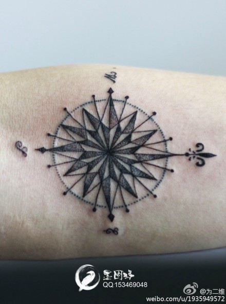 手臂潮流经典的一款指南针纹身图案