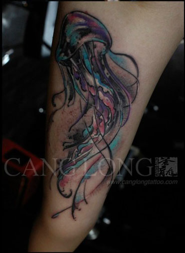手臂内侧精美时尚的一款水母纹身图案