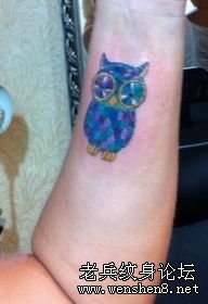 一款另类经典手臂彩色猫头鹰纹身图案纹身图片