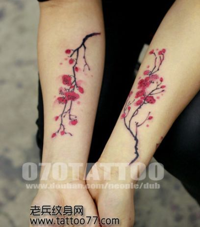 唯美的手臂彩色梅花纹身图案