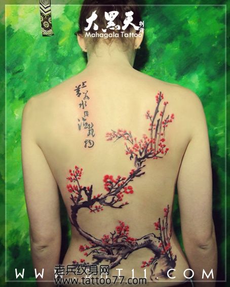 女生喜欢的背部梅花纹身图案