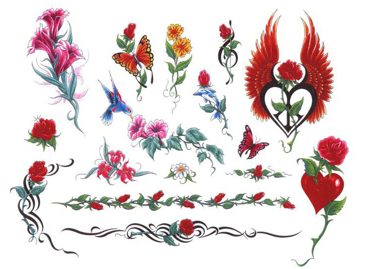 玫瑰花卉蝴蝶爱心翅膀图腾喇叭花纹身图案图片
