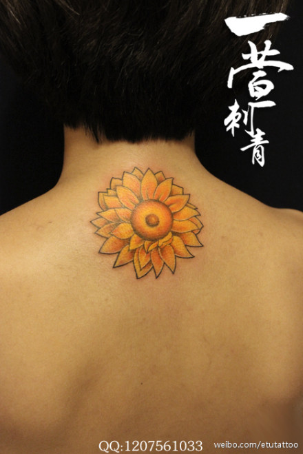女生颈部好看的太阳花纹身图案