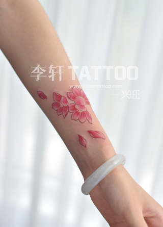 女生手臂唯美精美的樱花纹身图案