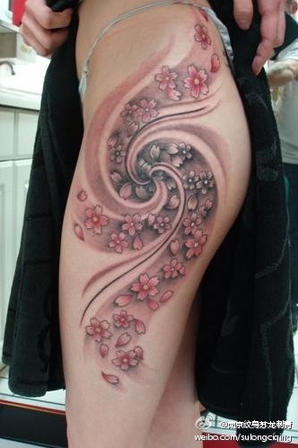 女生臀部唯美时尚的樱花纹身图案