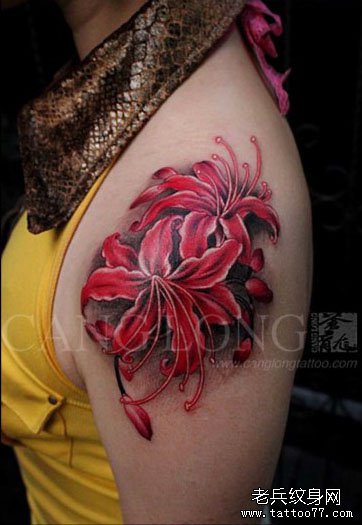 女生后背漂亮潮流的彼岸花纹身图案