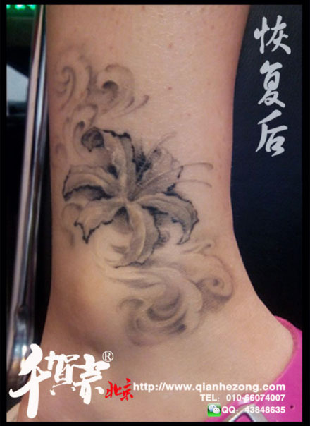女生脚踝处潮流小巧的彼岸花纹身图案