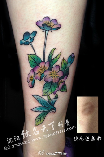 女生腿部漂亮唯美的花卉纹身图案