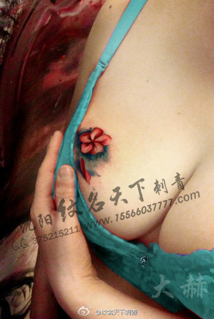 美女胸部漂亮精美的小花卉纹身图案